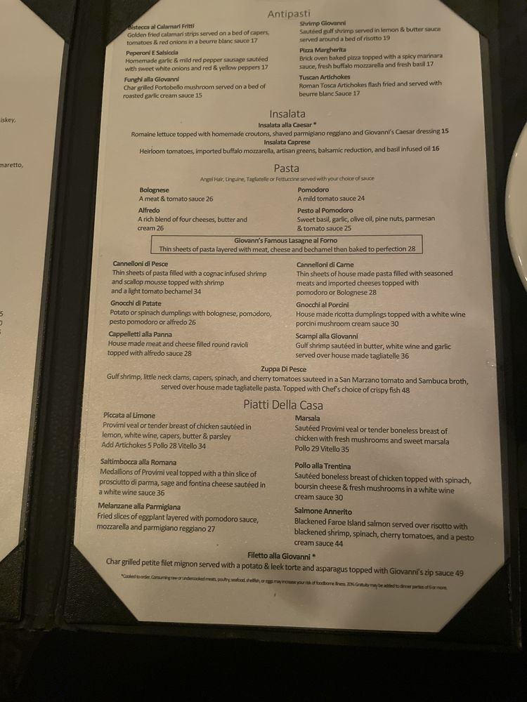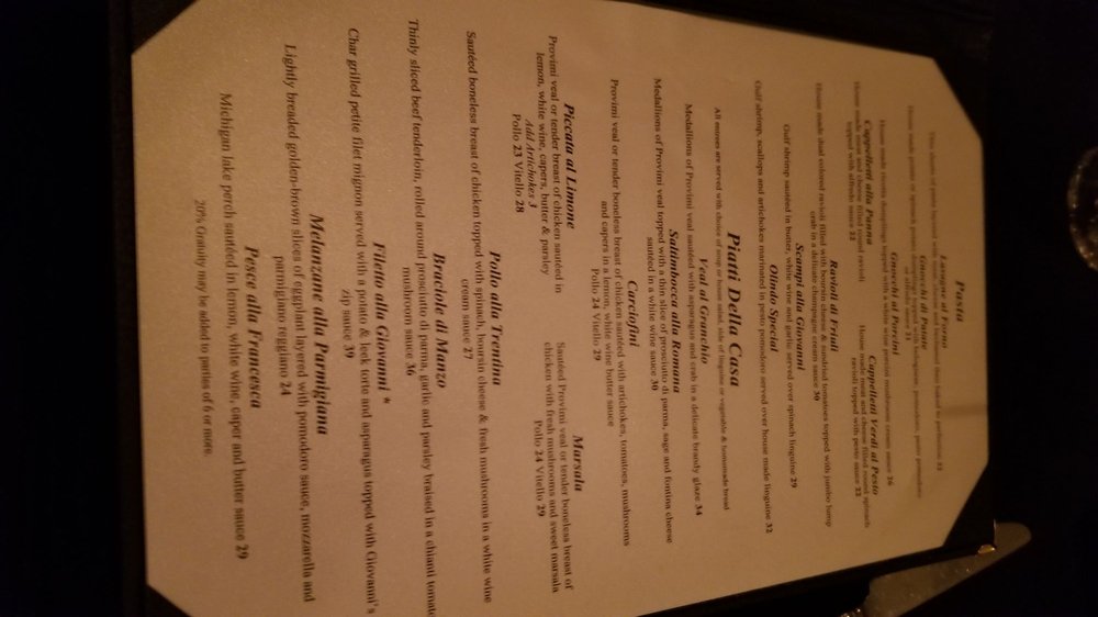 Giovanni’s Ristorante in Detroit, Michigan, is a top-notch Italian restaurant offering a warm and cozy atmosphere with a romantic touch. The menu features authentic, homemade dishes such as chicken piccata, lasagna, lemon chicken, and gnocchi. Customers rave about the fresh and delicious food, impeccable service, and old-school Italian ambiance. Standout items include Bistecca Calamari Fritta, Bruschetta, and Toscana Insalata. The restaurant also caters to various dietary preferences with many vegetarian options available. Giovanni’s Ristorante is a must-visit for those craving traditional Italian cuisine in a charming setting. Reservations are recommended due to its popularity. It's definitely a place where you can experience a taste of Italy without leaving Detroit.